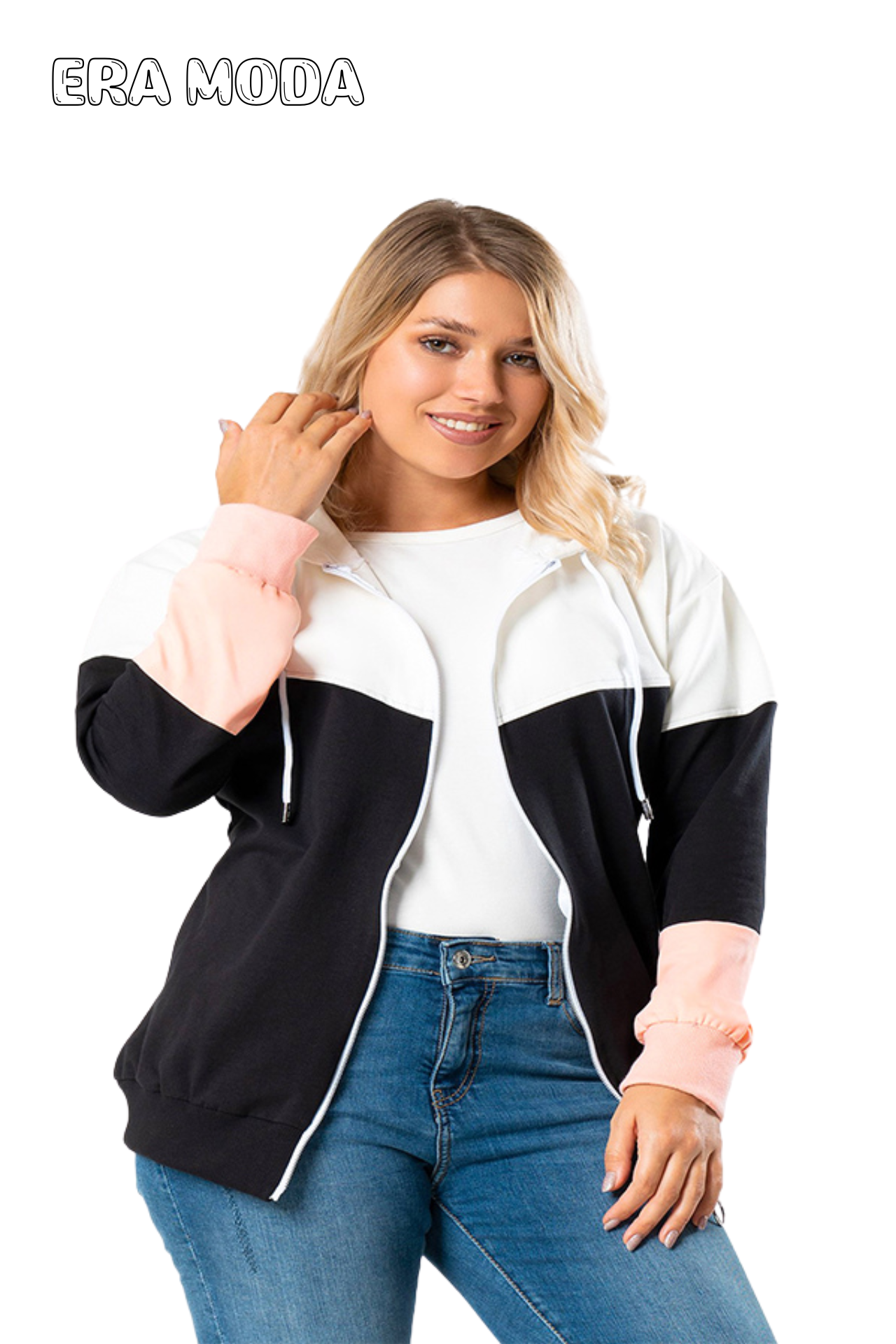 • التصميم الأول: أعلى أبيض – أسفل إسود بأكمام وردي