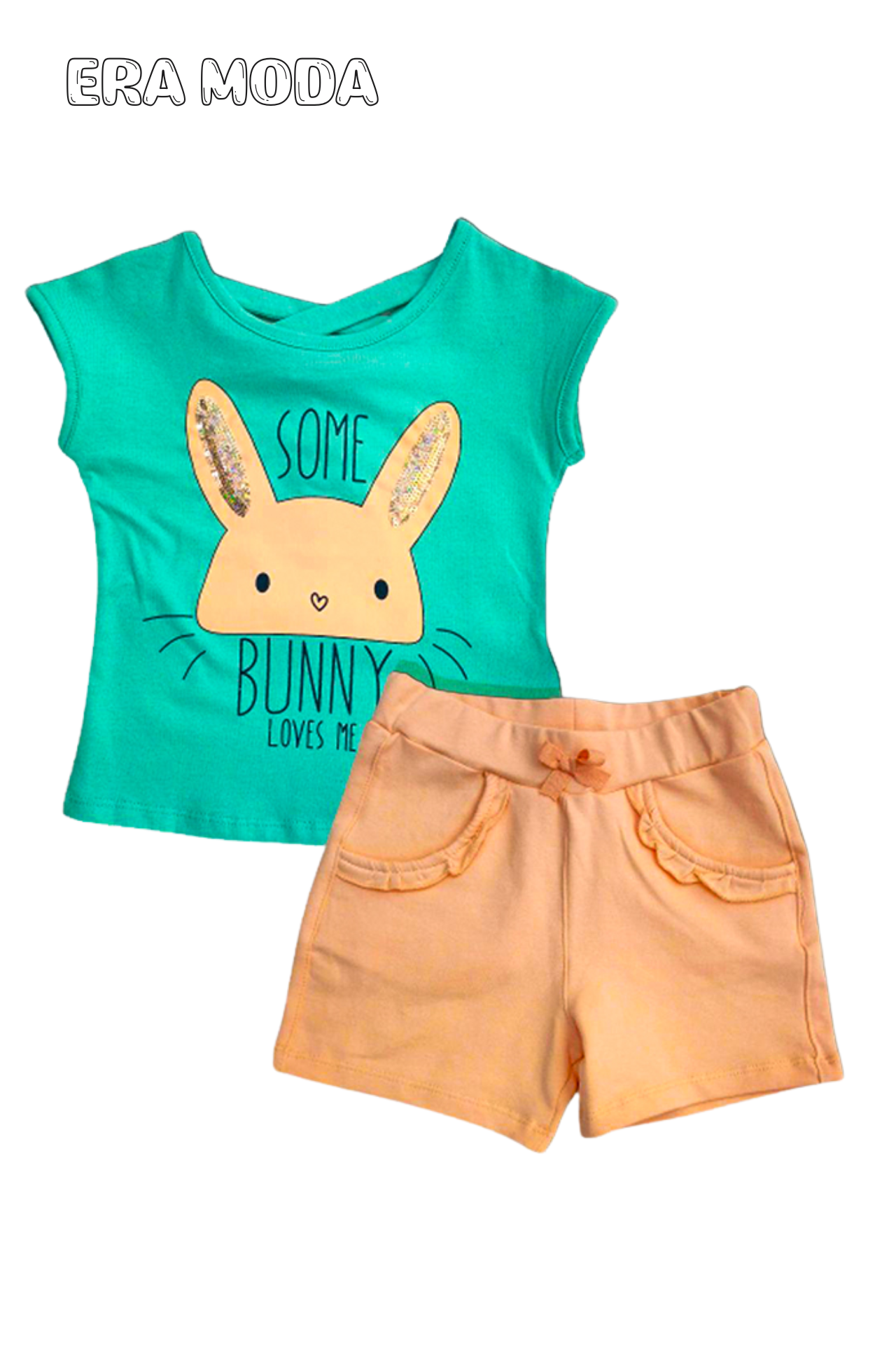 الموديل الثاني: بلوزة تركواز جذابة + شورت أورانچ مشع