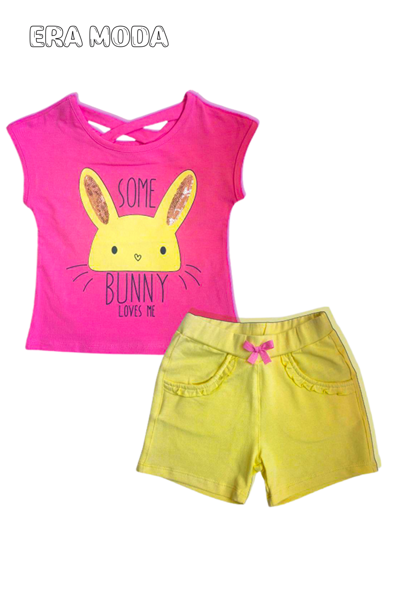 الموديل الأول: بلوزة فوشيا أنيقة + شورت أصفر مبهج